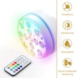 Lueas® Draadloze Ledlampjes Waterdicht – Met Afstandbediening -2 Stuks Op Batterijen – RGB – Dimbaar
