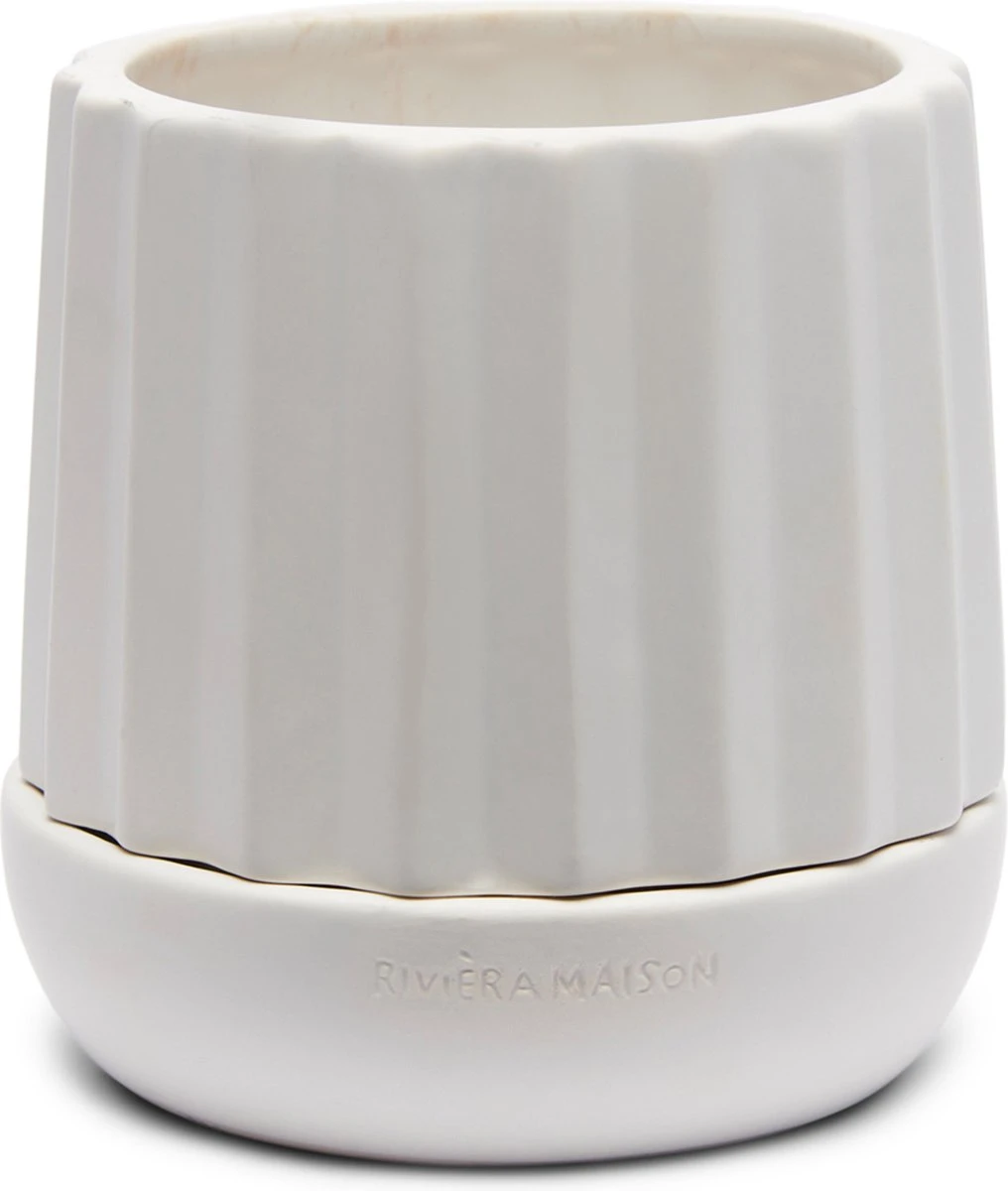 Riviera Maison Plantenbak Rond, Bloempot Met Ribbel – RM Let It Grow Planter – Wit – Porselein – Maat S